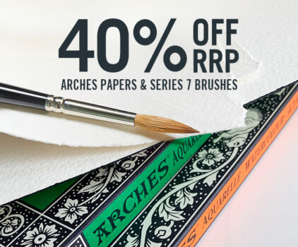 Dont miss out on saving 40% off RRP on professional quality watercolour materials. From the highly praised Arches watercolour paper to the expertly crafted Winsor & Newton Series 7 Brushes, achieve exceptional results in your artwork. Ends Sunday 17th August. Online only.