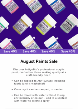 Explore IndigoBlu’s professional acrylic paint and enjoy a 40% discount during the August Sale! Act fast, because once they’re gone, they’re gone. (WAS £5.00. NOW ONLY £3.00!)