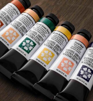 Daniel Smith watercolour and gouache paints are carefully formulated using the latest developments in paint technology to achieve colours that are richly pigmented and highly vibrant. The incredible spectrum of colours available in the watercolour collection extends into a series of specialised colours, including their Luminescents, which produce beautiful light effects.