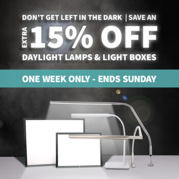 As an artist, you know the value of every ray of light, especially during the winter months. Don’t let the winter darkness dim your creative spirit! Light up your creativity and save an EXTRA 15% OFF selected Daylight Lamps and Light Boxes. For ONE WEEK ONLY you can take advantage of these great savings and let your art shine bright. Find out more about Daylight lamps below or visit our website to grab a discounted lamp.