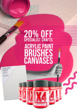 For a limited time, we've reduced the pricing by 20% on our entire range of Specialist Crafts acrylic paints, brushes, and canvases. Everything you need to bring creative ideas to life in the classroom or studio.
